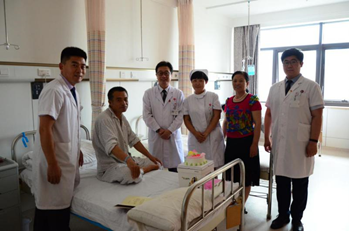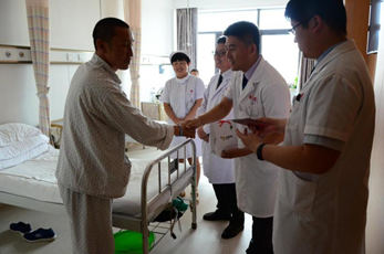 每月吉林國文醫(yī)院黨委都會委派副書記和黨辦主任帶領(lǐng)黨委秘書到療區(qū)給黨員患者過生日,給黨員患者送上生日蛋糕、佩戴黨徽并合影留念。