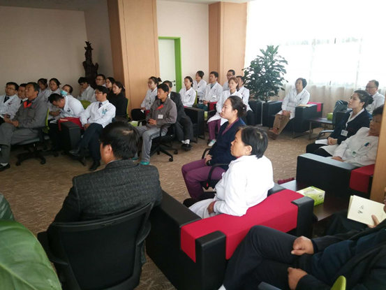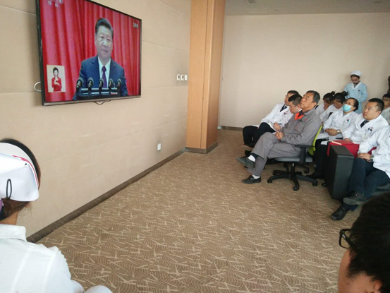 國文醫(yī)院黨員們屏息靜氣聽習(xí)主席作報(bào)告,一直到下班的音樂響起,都無一人離席。因工作原因,直到黨委副書記讓大家回去繼續(xù)觀看,大家才一一退場。