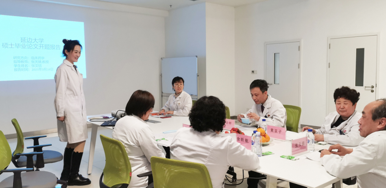 張?zhí)戽?zhèn)院長兼任藥學部主任,同時也是延邊大學藥學專業(yè)碩士生導師,他的學生張文鈺于2019年9月入學,在延邊大學完成1年的理論課程學習后,來到我院開始為期2年的校外實踐階段的學習。