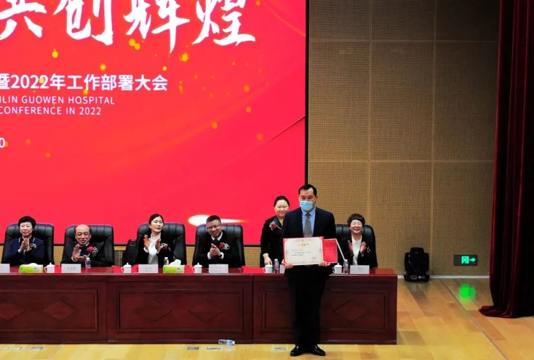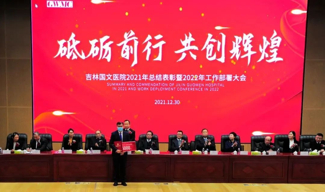 回首2021,呂國旗院長對(duì)大家取得的成績表示認(rèn)可,對(duì)所有國文人的付出表示誠摯的感謝,同時(shí)要特別感謝北京專家、長春專家一年來為國文事業(yè)發(fā)展做出的巨大貢獻(xiàn)!2021年不僅僅是建黨100周年,對(duì)于國文醫(yī)療集團(tuán)來說亦是承上啟下,蓄勢待發(fā)的一年。在醫(yī)療行業(yè)激烈且復(fù)雜的競爭大環(huán)境中,吉林國文醫(yī)院在董事長的堅(jiān)實(shí)領(lǐng)導(dǎo)下,全體國文人一路高歌猛進(jìn),醫(yī)療護(hù)理質(zhì)量工作取得了長足發(fā)展,綜合能力得到進(jìn)一步加強(qiáng),醫(yī)院品牌影響力得到了較大提升,這個(gè)榮譽(yù)屬于每一個(gè)國文人。