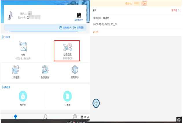 返回到功能菜單界面,點擊【掛號記錄】,可以查詢到以往的掛號記錄。