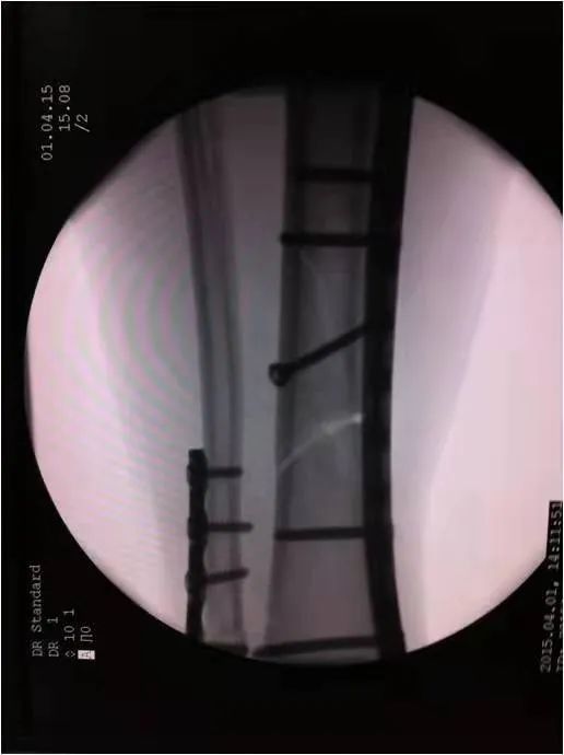 2022年4月22日,我院急救中心接診了一名骨折患者:患者在家不慎摔倒,導致剛做完手術沒多久的脛腓骨再次受創(chuàng),疼痛劇烈傷情加重。骨科呂國福主任迅速給予夾板外固定治療,并給予止疼治療減輕患者疼痛。經診斷患者脛腓骨粉碎性骨折明確,且第一次接骨板釘?shù)廊钥梢?,如不及時手術可能出現(xiàn)骨斷端外露發(fā)展為開放性骨折,可能出現(xiàn)骨筋膜室綜合癥。