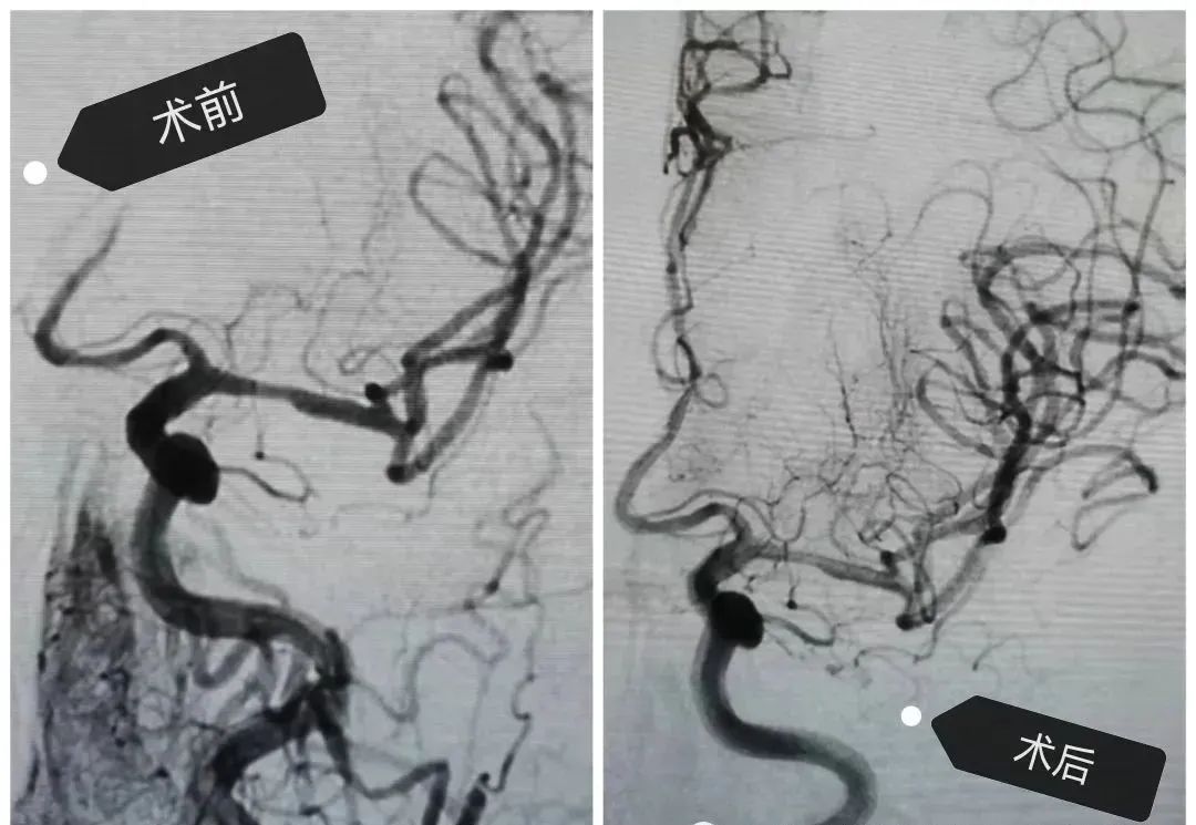不幸的是溶栓2小時(shí)后,患者病情再次加重,出現(xiàn)不能說話,右側(cè)肢體全癱的病癥,考慮到再次梗塞的情況發(fā)生。卒中小組-神經(jīng)外科王芃主任緊急會(huì)診后建議全腦血管造影術(shù)(DSA)及介入治療,術(shù)中顯示患者左側(cè)大腦前動(dòng)脈閉塞,需立即采取動(dòng)脈內(nèi)開通技術(shù),再通大腦前動(dòng)脈后幫助患者轉(zhuǎn)危為安。術(shù)后患者病情很快好轉(zhuǎn),語言和肢體功恢復(fù),經(jīng)短期康復(fù)后出院。