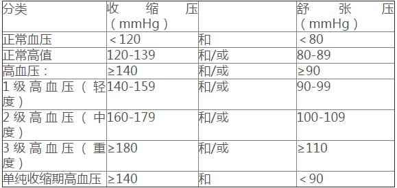 備注:當(dāng)收縮壓和舒張壓分屬于不同分級時,以較高的級別作為標(biāo)準(zhǔn),1mmHg=0.133kPa。