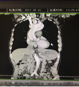 5月2號(hào)劉大伯照常早起干活,突然胸部劇烈疼痛,難以忍受,全身大汗,同時(shí)伴有右上肢發(fā)涼,他心想這次心絞痛比之前嚴(yán)重的多啊,趕緊叫上孩子到吉林國(guó)文醫(yī)院心血管內(nèi)科住院,患者長(zhǎng)期高血壓病史,血壓一直控制不理想,大夫給他做了檢查,測(cè)左上肢血壓:82/45mmHg,右上肢血壓測(cè)不出,心率52次/分,右側(cè)肱動(dòng)脈、尺動(dòng)脈、橈動(dòng)脈搏動(dòng)消失,左側(cè)股動(dòng)脈搏動(dòng)較右側(cè)弱?!霸懔?,雙側(cè)血壓差別這么大,是不是主動(dòng)脈夾層了?”,接診大夫趕緊找來(lái)李主任,李主任反復(fù)詢(xún)問(wèn)患者病情,表情突然凝重起來(lái),患者胸痛這么明顯,血壓低的厲害,主動(dòng)脈夾層的可能性很大。二話不說(shuō),李主任立即聯(lián)系影像科的醫(yī)生準(zhǔn)備做主動(dòng)脈CTA,移動(dòng)患者做檢查的過(guò)程大夫們非常小心,嚴(yán)密監(jiān)測(cè)患者血壓變化情況。兩個(gè)小時(shí)后結(jié)果出來(lái)了,主動(dòng)脈夾層從升主動(dòng)脈一直撕裂到左側(cè)髂總動(dòng)脈?。?!