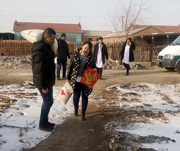 根據(jù)衛(wèi)生局關(guān)于脫貧攻堅工作2017年春節(jié)期間“送溫暖”活動通知,2017年1月19日,吉林國文醫(yī)院精準扶貧醫(yī)療隊一行10人來到大榆樹老柜村,該醫(yī)療團隊由我院內(nèi)外科專家及多名護士組成,為老柜村14戶幫扶家庭送來生活用品及免費檢查。