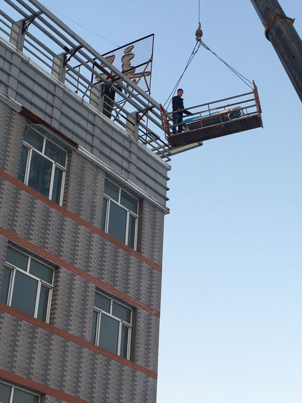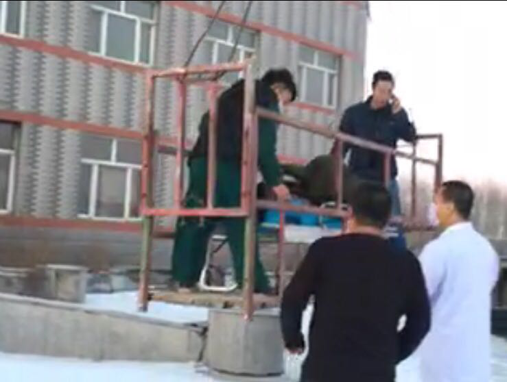 2016年12月1日14:40分,120通知二家子有一高空墜樓患者,吉林國文醫(yī)院急診科立即出動醫(yī)護人員前往;車至事發(fā)現(xiàn)場,患者為高空作業(yè)工人,由于安全設備損壞導致墜落,卡在4樓夾空處,我院醫(yī)護人員不顧危險乘坐高空作業(yè)設備在高空將患者救出,并迅速展開治療工作,安全接回吉林國文醫(yī)院。