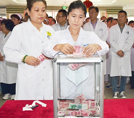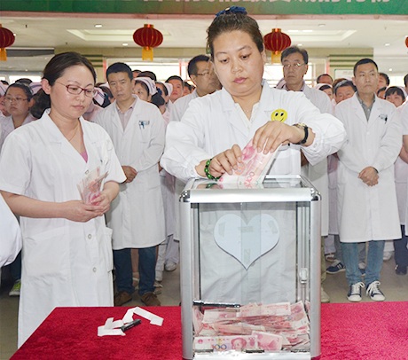 秋風煞爽,當一切都那樣的自然平靜,一場災難卻降臨到一個柔弱的女生身上,他就是血液腫瘤科患者常智清。于2010年前正值大學美好生活時,她由于牙齦出血,乏力,發(fā)現貧血,后就診于吉大二院,行骨髓穿刺后診斷為再生障礙性貧血,她是單親家庭,只有一位相依為命的母親常年陪伴在左右,由于經濟原因,僅給予輸血、止血等相關支持對癥治療維持生命?,F患者已無力支付血費及醫(yī)藥費。在了解情況后,我院員工為滿足患者常智清對生命的憧憬與渴望,激起她對生活的熱情與希望,為生命貢獻自己的一份力量,于今年10月14日國文醫(yī)院員工自發(fā)為貧困患者常智清捐款行動,截止到10月18日,已接收到全院十幾個科室捐款近7000余元,將全部用于患者的治療。