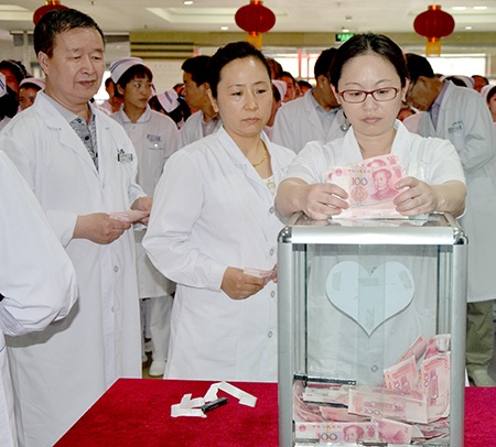 本次募捐得到了社會的廣泛好評。使廣大國文員工的思想品德和精神面貌煥然一新,整個醫(yī)院呈現出人人講奉獻,人人樂奉獻,團結互助,奮發(fā)向上的景象。相信在今后的工作生活中,大家會把愛心奉獻在每一個需要我們的地方,會將獻愛心作為一種生活常態(tài)進行下去,成為一種美德繼續(xù)下去。在此,感謝無私獻出愛心的所有同事們。