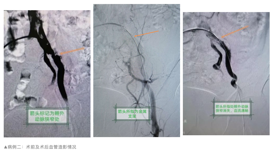 術(shù)后,兩名患者皮膚溫度明顯改善,可觸及足背動(dòng)脈搏動(dòng),行走時(shí)未再出現(xiàn)下肢疼痛現(xiàn)象。