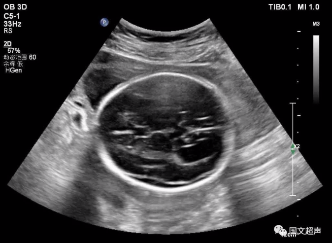 側腦室后角寬度>10mm為腦室輕度擴張,而寬度>15mm時即可診斷腦積水,若側腦室后角寬度<10mm,則應考慮其為正常的超聲表現。