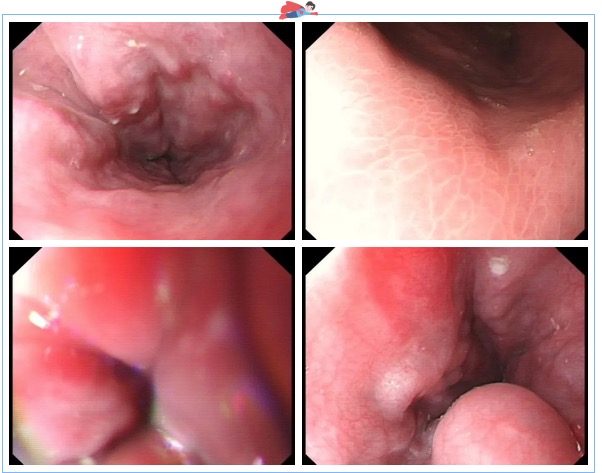 同時(shí),7診是一位肝病患者,距門齒約28cm至齒狀線見數(shù)條深藍(lán)色隆起靜脈,扭曲呈結(jié)節(jié)狀,胃體、胃底黏膜充血水腫,呈蛇皮樣改變,散見片狀紅斑。食管靜脈曲張重度,門脈高壓性胃病癥狀明顯。
