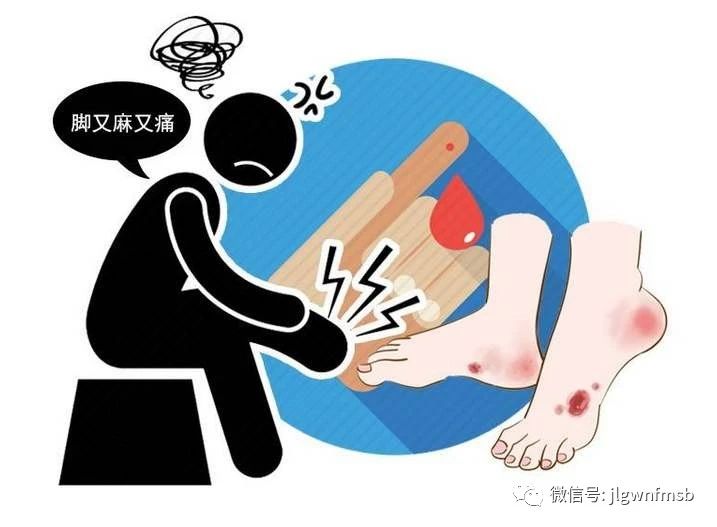 1、神經(jīng)病變表現(xiàn)。患肢皮膚干而無汗,肢端刺痛、灼痛、麻木、感覺減退或缺失,呈襪套樣改變,行走時有腳踩棉絮感。