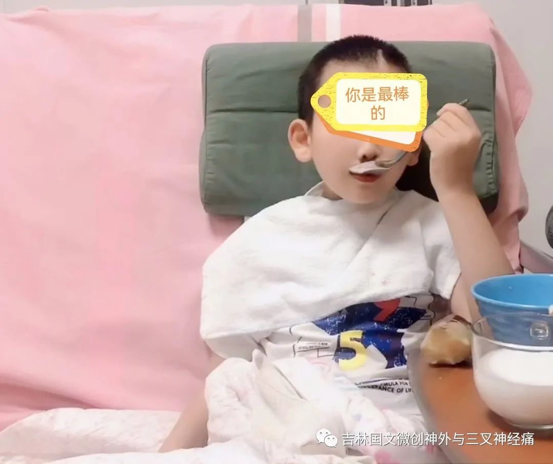 終于!功夫不負(fù)苦心人,在術(shù)后11天的時候病人能睜眼了,還能發(fā)出聲音,這一突破不僅讓家屬喜極而泣,也讓我們?nèi)f分高興,同時也松了一口氣,主任說,這孩子的命總算保住了。在護(hù)理姐妹的精心的護(hù)理與治療下、在家人無微不至的照顧下,現(xiàn)在這個小病人不但能進(jìn)行語言交流,而且還能自己吃飯,肢體功能有了很大的進(jìn)步,攙扶著已經(jīng)能夠站立了。每次查房看著孩子天真爛漫的笑容和揮揮手說一聲“謝謝”,心中無比的自豪,因?yàn)槲乙彩沁@個團(tuán)隊的一員。