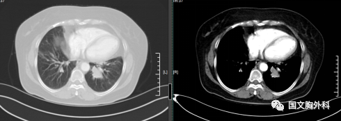 因病灶位置關(guān)系經(jīng)過支氣管鏡檢查未能明確病理,病灶包裹著血管CT穿刺風(fēng)險(xiǎn)巨大。