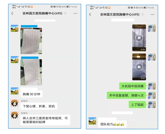 到達附近醫(yī)院時胸痛的癥狀愈加強烈,甚至連說話的力氣都沒有了。接診的是一個有經驗的資深醫(yī)生,立即意識到他病情的嚴重性。首先為其做了心電圖,結果不出所料,診斷為急性下壁心肌梗死,三度房室傳導阻滯(致命性的心律失常),心源性休克。這可是心血管內科的急重癥,對患者來說隨時都有致命生命危險,由于所處醫(yī)院不具備胸痛病人救治能力,醫(yī)生建議他馬上到我院胸痛中心進行就診,盡快做造影開通血管,于是醫(yī)生立刻通過區(qū)域內胸痛救治微信群與我院胸痛中心取得聯(lián)系,我院胸痛中心接到通知后,立即提前做好救治病人準備。