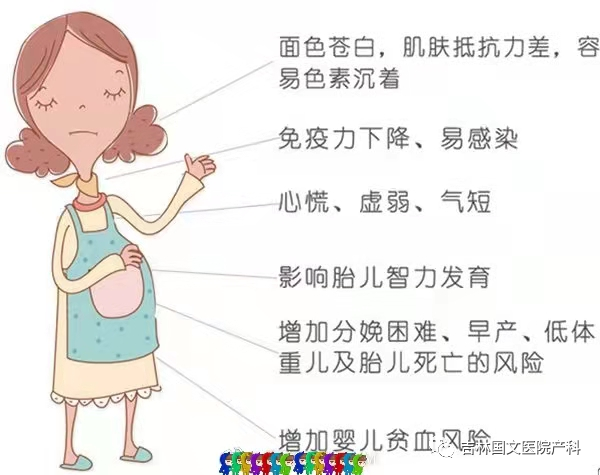 貧血是妊娠期較常見的合并癥。由于妊娠期血容量增加,且血漿增加多于紅細(xì)胞增加,血液呈稀釋狀態(tài),又稱“生理性貧血”。貧血在妊娠各期對母兒均可造成一定危害,在資源匱乏地區(qū),嚴(yán)重貧血也是孕產(chǎn)婦死亡的重要原因之一。在妊娠期各種類型貧血中,缺鐵性貧血最常見。