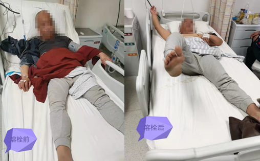 在溶栓過程中,每15分鐘監(jiān)測一次血壓,隨時觀察口腔及皮膚黏膜有無出血,且密切觀察病情變化,高大叔肌力逐漸好轉(zhuǎn),語言功能逐漸恢復(fù)。溶栓后第一天高大叔可在家屬攙扶下進(jìn)行床邊活動,口齒稍清晰,反應(yīng)和記憶力及邏輯能力正常。溶栓術(shù)后第三天:可自行行走,自行吃飯,生活自理能力明顯改善,治療效果非常顯著。