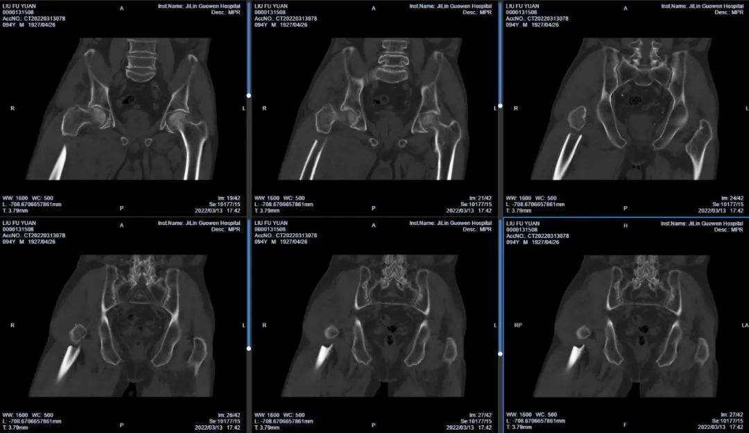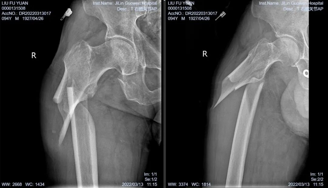面對(duì)如此高齡患者,為降低手術(shù)難度及麻醉風(fēng)險(xiǎn)。同時(shí)考慮到患者疼痛劇烈,無法配合腰麻,需要全麻。吉林國文醫(yī)院的專家團(tuán)隊(duì)們決定采取“有限切開,髓內(nèi)釘內(nèi)固定術(shù)”,該手術(shù)創(chuàng)傷小,風(fēng)險(xiǎn)低,術(shù)后有利于患者恢復(fù)。在麻醉科、心血管內(nèi)科團(tuán)隊(duì)的保駕下,于當(dāng)日夜間緊急為老人家實(shí)施手術(shù),手術(shù)歷時(shí)1個(gè)多小時(shí)。為能及時(shí)應(yīng)對(duì)患者出現(xiàn)術(shù)中血壓波動(dòng)大的風(fēng)險(xiǎn),麻醉科劉桂穎、程志超兩位主任及麻醉科值班醫(yī)生一直陪伴在老人身邊,監(jiān)護(hù)手術(shù)整個(gè)過程。