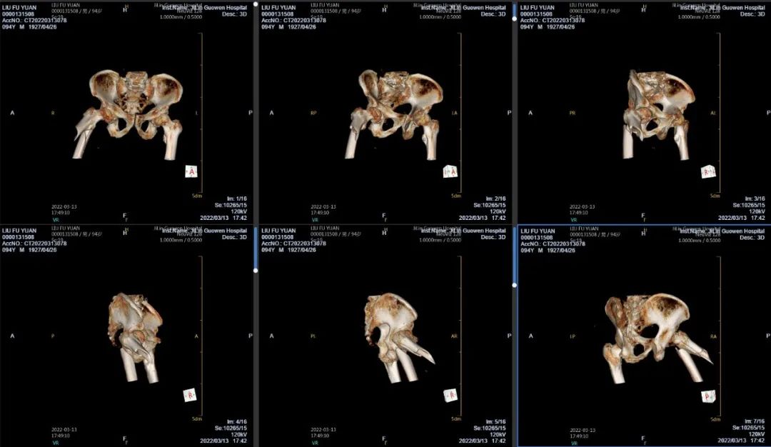 3月13日伴著急促的腳步聲、轆轆的車輪聲,夾雜著患者痛苦的呻吟聲,一位94歲的高齡老人被急診科醫(yī)護(hù)人員緊急送至骨科療區(qū)。這是怎么回事?呂國褔主任帶著值班醫(yī)生在做好防護(hù)措施后,第一時(shí)間來到患者病床前,經(jīng)急診科醫(yī)生診斷告知為 “股骨近端粉碎性骨折”,患者右大腿近端嚴(yán)重畸形,骨折端已經(jīng)刺穿前方肌肉直達(dá)皮下,局部皮膚高高隆起,局部皮膚有挫傷灶,呈青紫色,皮膚變薄,皮膚外可明顯觸及骨折斷端,右股骨X線片示:右股骨近端粉碎性骨折,斷端移位明顯,斷端銳利,近斷端位于前方皮膚下,局部皮膚隆起?;颊咛弁磩×?,痛苦難耐,測(cè)生命體征:血壓:220/110mmHg。