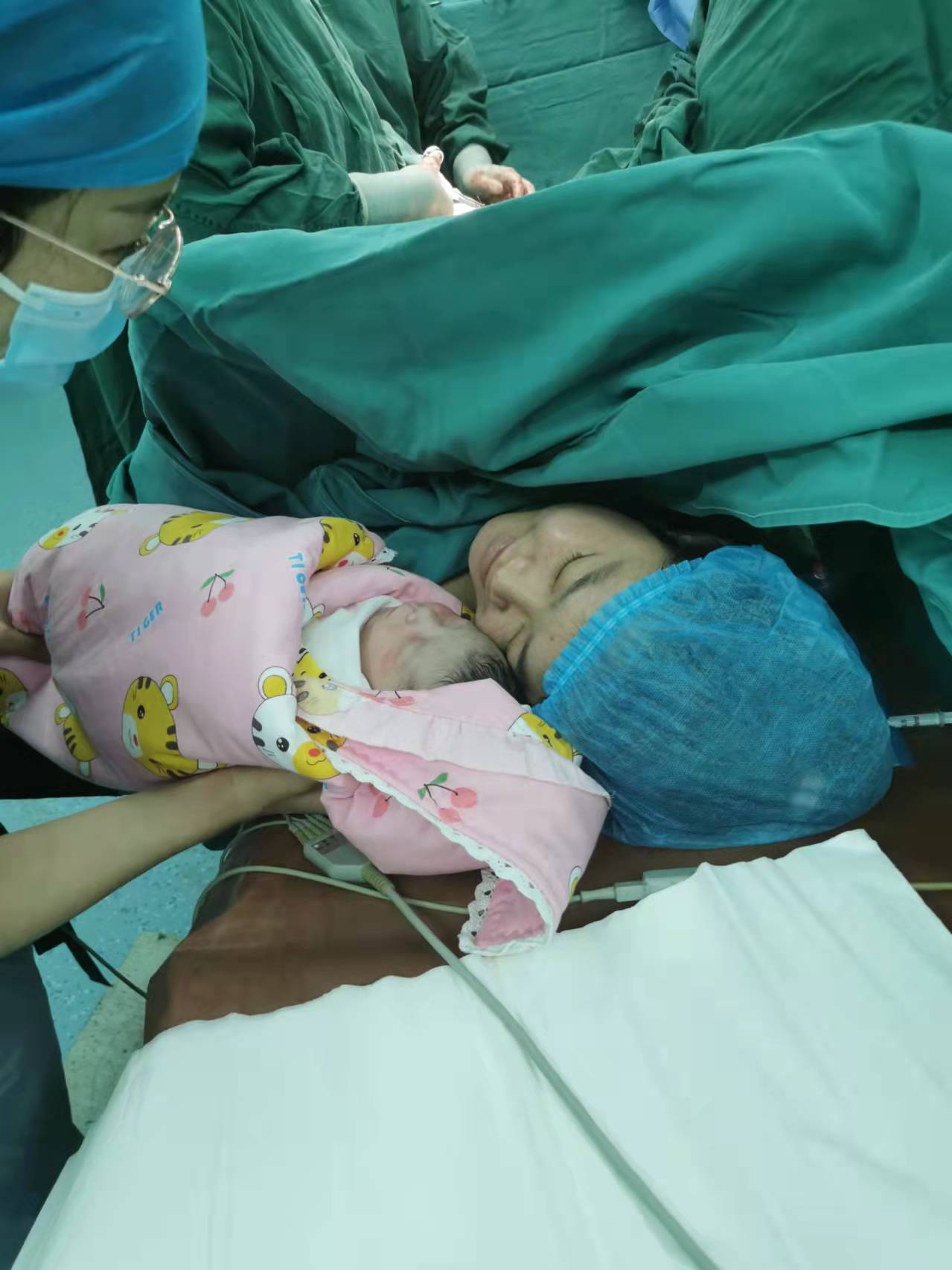 大寶的媽媽在孕晚期羊水過(guò)少,經(jīng)多次補(bǔ)液治療后羊水仍然偏少,臨近預(yù)產(chǎn)期羊水仍過(guò)少,并且出現(xiàn)了胎動(dòng)減少。經(jīng)過(guò)高虹霞團(tuán)隊(duì)的反復(fù)評(píng)估給予剖宮產(chǎn)術(shù)結(jié)束分娩。大寶出生時(shí)羊水I°渾濁,體重3750克,對(duì)于母親,此時(shí)已是無(wú)比的幸福。嬰兒落地的瞬間,像華麗的化身,我們的笑容無(wú)時(shí)的蕩漾,大寶的哭聲是對(duì)我最好的回饋。