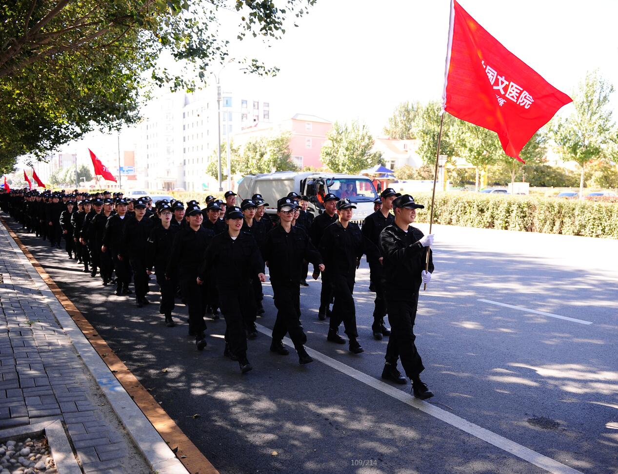 9月16日下午,國文醫(yī)療集團公主嶺院區(qū)舉行2018年軍事訓(xùn)練匯報演示。