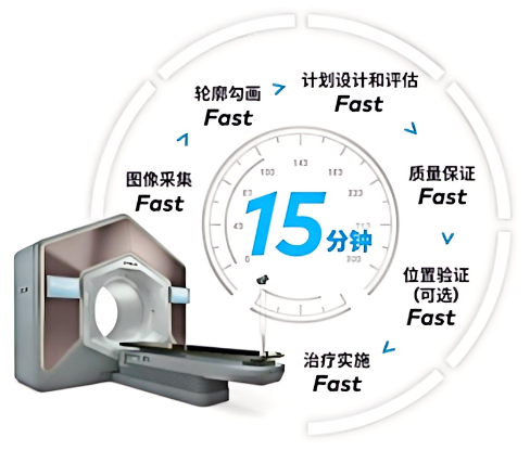 與常規(guī)直線(xiàn)加速器相比,Ethos通過(guò)集成人工智能、軟硬一體化平臺(tái)等全要素技術(shù)創(chuàng)新與整合,在放療的每個(gè)分次,實(shí)現(xiàn)所有關(guān)鍵步驟的“6個(gè)快”:快速成像-快速勾畫(huà)-快速計(jì)劃-快速質(zhì)控-快速驗(yàn)證-快速施照。在每次治療前,根據(jù)患者當(dāng)次治療的高清晰度iCBCT影像對(duì)所治療的腫瘤靶區(qū)在每日治療過(guò)程中的變化,通過(guò)AI智能化評(píng)估、自動(dòng)調(diào)整并重新計(jì)算當(dāng)日照射劑量,整個(gè)過(guò)程只需要15分鐘就能完成,而在此之前,常規(guī)放療方式此流程至少需要2~3天時(shí)間。省去了以往患者療前繁瑣的準(zhǔn)備流程,將工作效率和治療能力提升到一個(gè)全新的高度,為腫瘤患者的治療贏(yíng)得了更多寶貴時(shí)機(jī)。
