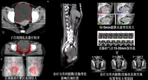 以宮頸癌為例,由于宮頸癌的放療靶區(qū)較長(zhǎng)、周?chē)<捌鞴偕婕拜^多、腫瘤的位置常受到膀胱充盈及腸道積氣等多重因素影響而變動(dòng),既往放療主要通過(guò)增大外放邊界來(lái)解決不同治療分次間腫瘤位置發(fā)生較大變化的問(wèn)題,但這樣做同時(shí)也會(huì)增加膀胱、腸道等正常組織劑量,而導(dǎo)致放療后出現(xiàn)腹瀉、尿路刺激癥狀等情況。