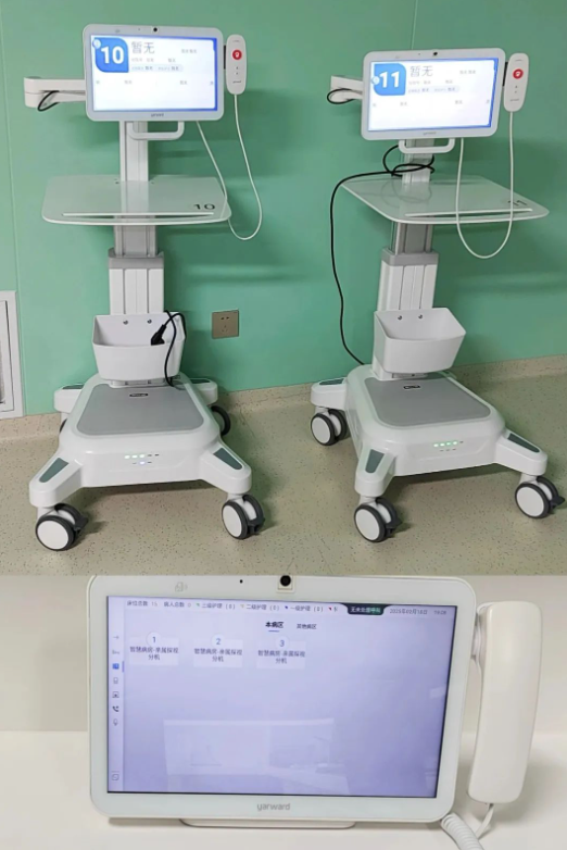 上圖為視頻探視床旁分機(jī)下圖為視頻探視主機(jī)