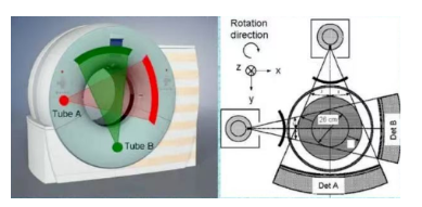采用雙球管+雙探測器設(shè)計(jì),掃描速度達(dá)0.25秒/圈,1秒完成全身大血管成像,擺脫心跳、呼吸等運(yùn)動偽影、金屬植入物偽影的干擾,極大程度減低了控制心率的要求和屏氣的時(shí)間。冠脈CTA成像不受心率限制,其他CT做冠脈CTA檢查,都要求心率70以內(nèi),發(fā)現(xiàn)超過90的心率就不繼續(xù)檢查了,但是對于雙源CT,就沒有這個限制,心率超過100的患者,仍然可以檢查,且擁有高成功率,并且對于心率二聯(lián)律的患者,機(jī)器可自行識別,確?;颊叩那逦上?。