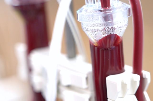 透析護(hù)士早已做好充分準(zhǔn)備,兩名患者順利上機(jī),開始進(jìn)行床旁血濾。隨著血泵徐徐轉(zhuǎn)動(dòng),他們體內(nèi)多余的水分和毒素逐漸轉(zhuǎn)移到廢液袋中。