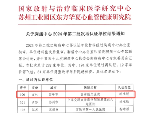 4月3日,吉林國文醫(yī)院胸痛中心以全優(yōu)成績通過國家級(jí)標(biāo)準(zhǔn)版“再認(rèn)證”,成為中國胸痛中心總部認(rèn)證的全國標(biāo)桿單位。這是該院繼2021年首次獲評(píng)后,第二次通過這一代表我國急性胸痛救治最高水平的國家級(jí)評(píng)審,標(biāo)志著其救治體系、質(zhì)控能力和區(qū)域協(xié)作水平持續(xù)穩(wěn)居“國家隊(duì)”行列。