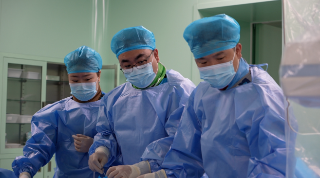 一場(chǎng)爭(zhēng)分奪秒的 “生命接力” 就此展開(kāi),11 名醫(yī)護(hù)人員緊密協(xié)作,迅速完成各項(xiàng)檢查。姜福成主任向家屬詳細(xì)交代病情,并迅速啟動(dòng)導(dǎo)管室。盡管此時(shí)已至午夜,為挽救患者生命,姜主任、王大偉醫(yī)生及導(dǎo)管室醫(yī)護(hù)人員全力以赴,開(kāi)展取栓介入手術(shù)。