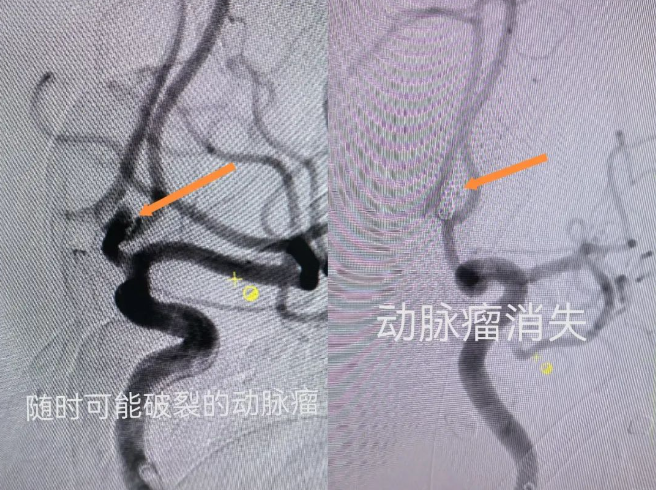 長春國文醫(yī)院神經(jīng)介入團(tuán)隊接到通知后,即刻啟動 “腦卒中綠色通道”。通過頭部 CTA 檢查,精準(zhǔn)鎖定了前交通位置一枚 8mm 的動脈瘤,且伴有兩個子囊。在麻醉科、導(dǎo)管室、影像科等多學(xué)科的緊密協(xié)作下,主刀醫(yī)生僅用 43 分鐘便完成了微創(chuàng)栓塞手術(shù),成功拆除了這顆破裂的 “顱內(nèi)炸彈”。