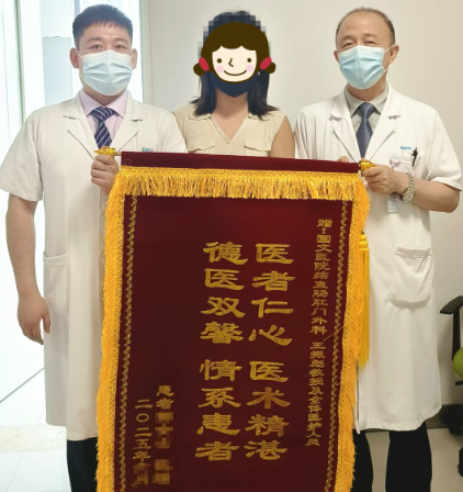 “真沒(méi)想到,痔瘡手術(shù)能恢復(fù)得如此迅速!” 談及此次治療經(jīng)歷,來(lái)復(fù)查的郝女士(化名)難掩內(nèi)心的激動(dòng),話(huà)語(yǔ)中滿(mǎn)是對(duì)北京王振彪教授團(tuán)隊(duì)的感激與贊譽(yù)。為了表達(dá)內(nèi)心的感激之情,郝女士特意定制了一面錦旗,在復(fù)查時(shí)鄭重地送到了王振彪教授手中。錦旗上,“醫(yī)者仁心、醫(yī)術(shù)精湛、德醫(yī)雙馨、情系患者” 幾個(gè)大字熠熠生輝,承載著郝女士最誠(chéng)摯的謝意。