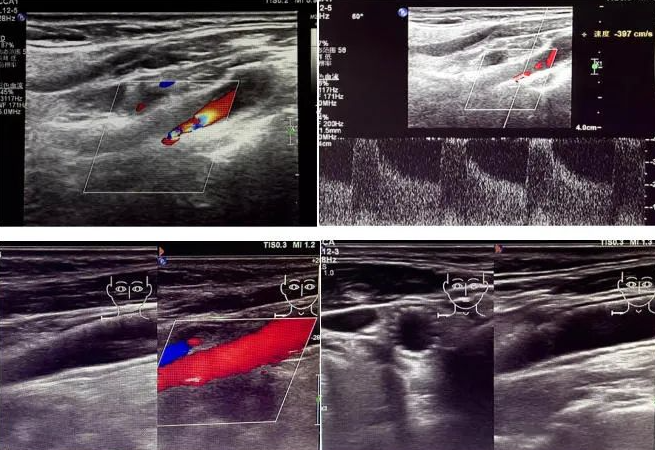 該患者因反復頭暈前來國文醫(yī)院就診。經(jīng)醫(yī)院超聲科運用高端超聲設備進行頸動脈超聲檢查后發(fā)現(xiàn),其右側頸動脈狹窄程度超過 90%。如此嚴重的狹窄狀況,猶如高速公路上的嚴重堵車,使得血液流通受阻,大大增加了腦梗死的風險,時刻威脅著患者的生命安全。