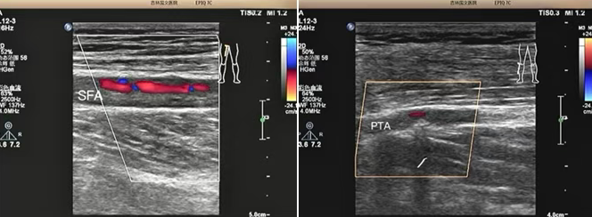 該患者是一位老年男性,因 “雙小腿麻木、發(fā)涼 2 個(gè)月” 前來(lái)我院就診。超聲科為其進(jìn)行下肢動(dòng)靜脈彩超檢查時(shí),精準(zhǔn)發(fā)現(xiàn)其股淺動(dòng)脈及脛后動(dòng)脈存在重度狹窄至閉塞的情況。超聲檢查憑借其無(wú)創(chuàng)、便捷的獨(dú)特優(yōu)勢(shì),在第一時(shí)間就為臨床治療提供了準(zhǔn)確無(wú)誤的診斷依據(jù),為后續(xù)治療方案的制定奠定了堅(jiān)實(shí)基礎(chǔ)。