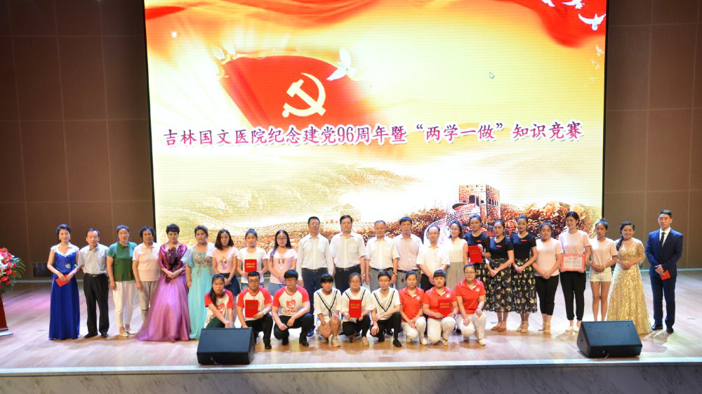 為迎接七·一黨的生日,學(xué)習(xí)宣傳國(guó)文黨建文化知識(shí),提高教育黨員模范意識(shí),增強(qiáng)廉潔自律的自覺性,促進(jìn)我院“兩學(xué)一做”工作的貫徹落實(shí),營(yíng)造“守黨紀(jì),正黨風(fēng)”的良好氛圍,讓醫(yī)院黨員、預(yù)備黨員、以及入黨積極分子加深愛國(guó)主義情感教育,進(jìn)一步培養(yǎng)醫(yī)院職工的合作精神,培養(yǎng)職工的責(zé)任感。吉林國(guó)文醫(yī)院在2017年6月26日14:00在學(xué)術(shù)中心舉行紀(jì)念建黨96周年黨史知識(shí)競(jìng)賽,蒞臨本次決賽領(lǐng)導(dǎo)有市委組織部副部長(zhǎng)張春野、宣傳部志愿者服務(wù)科科長(zhǎng)李林、組織部非公企業(yè)辦公室主任陳瑞、衛(wèi)生計(jì)生局副局長(zhǎng)張凱琪、衛(wèi)生計(jì)生局機(jī)關(guān)黨委書記翟惜瑞、公主嶺報(bào)副主編易少軍、吉林國(guó)文醫(yī)院黨委書記呂國(guó)旗、黨委副書記王景莘、副院長(zhǎng)高俊田、副院長(zhǎng)楊維生、黨委紀(jì)檢書記邵玉琴、副院長(zhǎng)林楠、副院長(zhǎng)李冬嚴(yán)、副院長(zhǎng)欒衛(wèi)國(guó)、副院長(zhǎng)王永琴、黨委組織委員祝巍、黨委宣傳委員李宜森,特約媒體公主嶺電視臺(tái)新聞中心、嶺城365節(jié)目組。