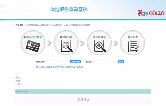 注:體檢報(bào)告查詢系統(tǒng)>可查詢最近一次體檢報(bào)告,體檢時(shí)未預(yù)留手機(jī)號(hào)碼無法查詢