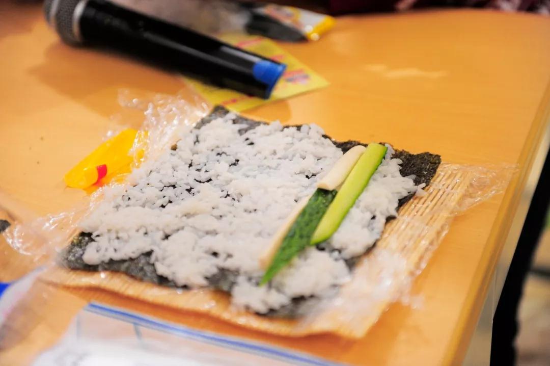 講課結(jié)束后,月子會所的工作人員備好紫菜、竹簾及各色配料,由益生元的工作人員教授制作方法,之后由各位寶媽親自動手制作。經(jīng)過一番努力,每個人做的都有模有樣。