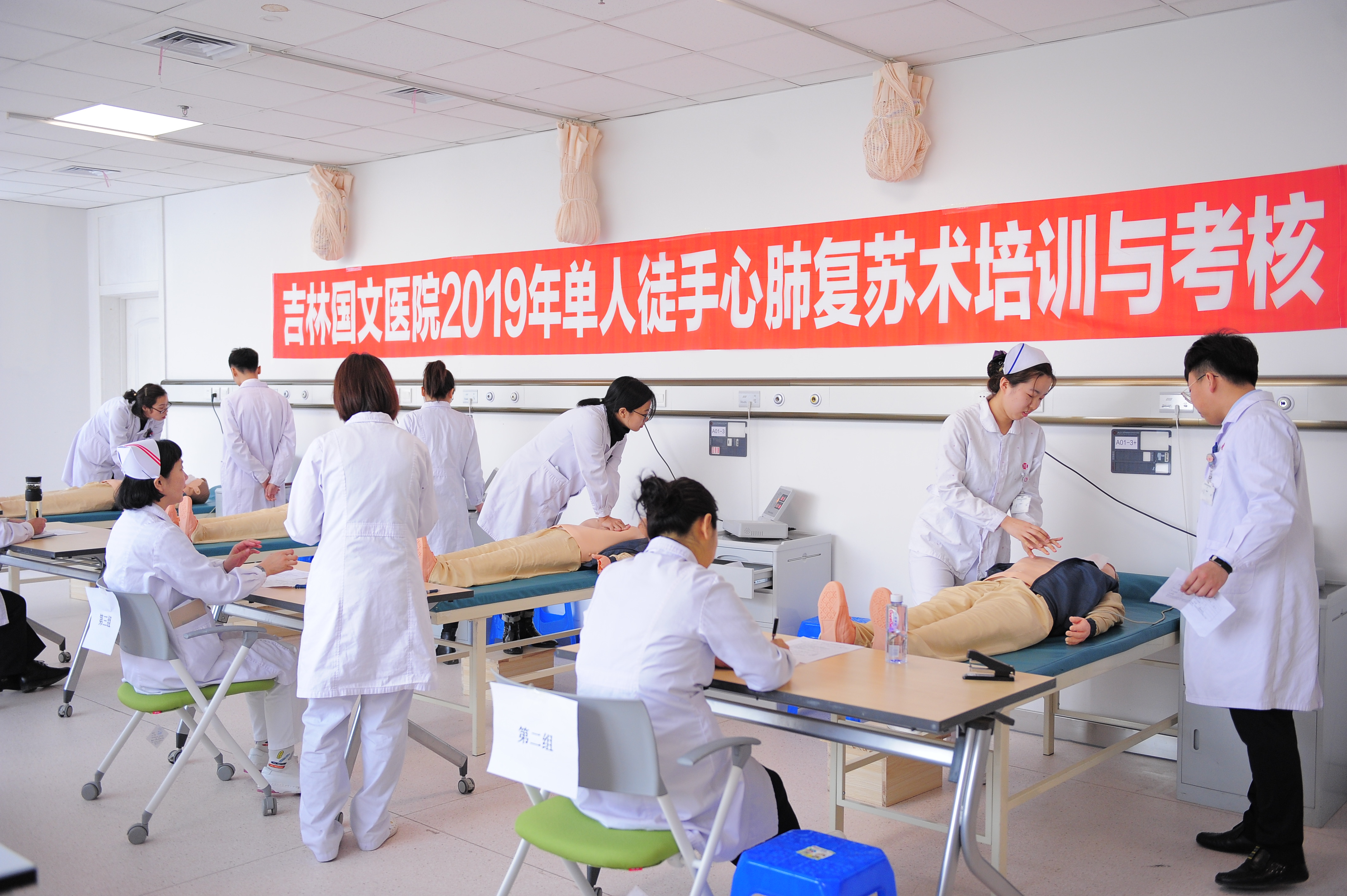 臨床急救知識和技能的訓(xùn)練,是保證醫(yī)療安全和醫(yī)療質(zhì)量的重要前提。為加強(qiáng)臨床醫(yī)師對心肺復(fù)蘇知識及技能的掌握,提高醫(yī)療服務(wù)質(zhì)量,吉林國文醫(yī)院醫(yī)務(wù)處和護(hù)理部組織了全員心肺復(fù)蘇培訓(xùn),制定了完善的《吉林國文醫(yī)院2019年度醫(yī)護(hù)人員心肺復(fù)蘇培訓(xùn)與考核方案》,成立考核領(lǐng)導(dǎo)小組和考核評委組。根據(jù)培訓(xùn)計(jì)劃安排,全院醫(yī)療醫(yī)技人員分5組進(jìn)行心肺復(fù)蘇術(shù)的理論學(xué)習(xí)和操作技能培訓(xùn),培訓(xùn)結(jié)束后分別組織考核并由模擬人與電腦相結(jié)合。經(jīng)過2周認(rèn)真訓(xùn)練,1周考核,收到良好效果。