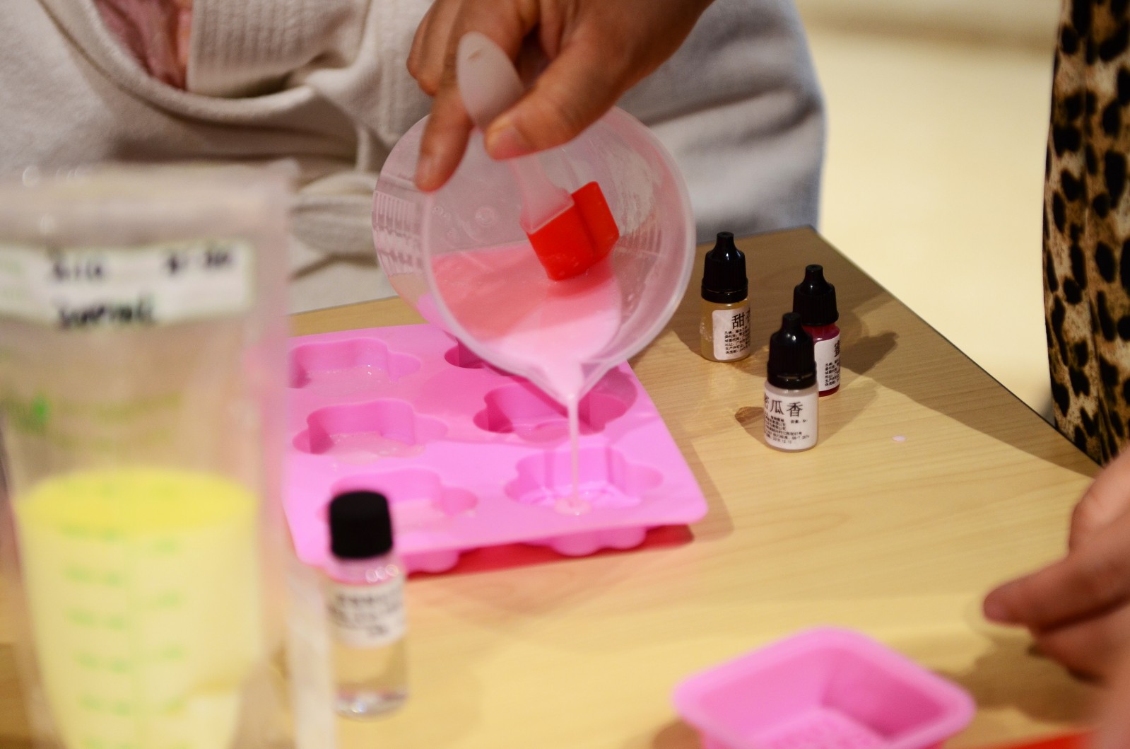 小心翼翼地倒入模具中