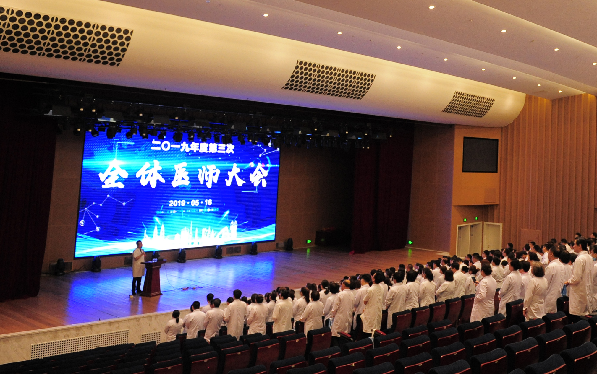 為強(qiáng)化醫(yī)院醫(yī)療隊伍建設(shè)、推廣新技術(shù)項目應(yīng)用、總結(jié)近期醫(yī)療質(zhì)量與安全管理重點(diǎn)工作,2019年5月16日下午,吉林國文醫(yī)院2019年第三次全體醫(yī)師大會在醫(yī)院學(xué)術(shù)報告廳順利召開。醫(yī)院領(lǐng)導(dǎo)班子及全院各臨床醫(yī)技科主任、醫(yī)(技)師共500余人參會。本次醫(yī)師大會由醫(yī)務(wù)處處長劉寶安主持。