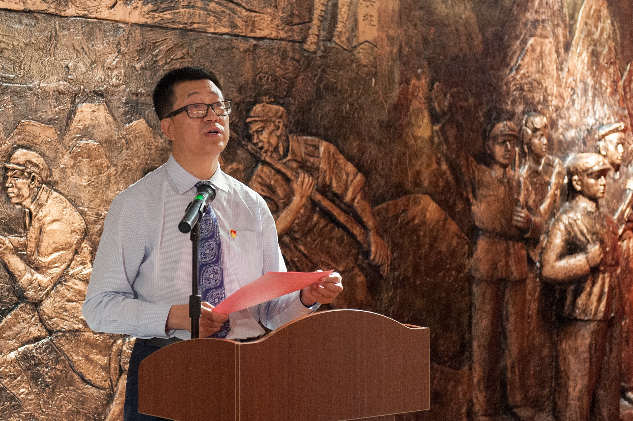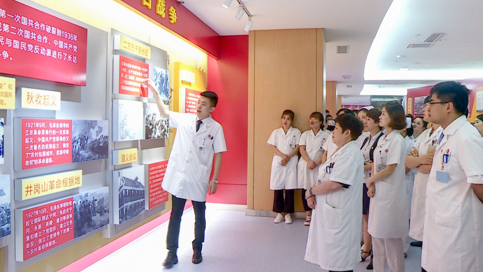 活動(dòng)第三項(xiàng),全體黨員參觀我院投資建設(shè)的黨史紀(jì)念館。本次參觀共分為三組,分別由高俊田副書記、院辦主任李宜森及成員姜斌擔(dān)任講解員,為大家進(jìn)行細(xì)致講解。