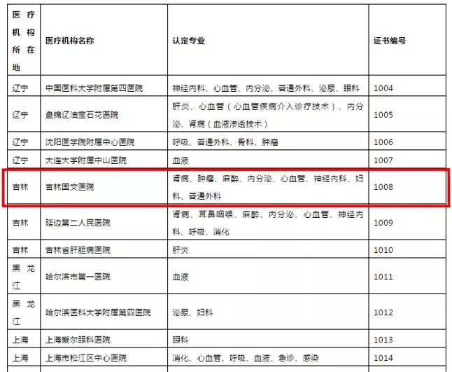 10月31日,國家藥監(jiān)局關(guān)于藥物臨床試驗機構(gòu)資格認定檢查的公告(第5號)(2019年第86號),吉林國文醫(yī)院順利通過了國家藥物臨床試驗機構(gòu)資格認定(簡稱“GCP資格認定”)證書編號1008。